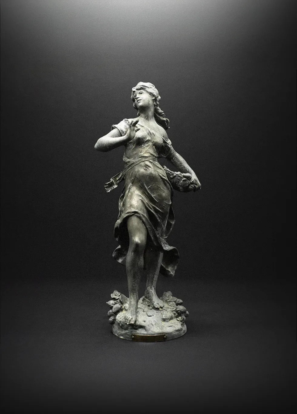 In all it's Art Nouveau glory, a graceful woman with her basket full of strawberries, and inscribed on a brass plaque, 'Les Fraises' Par Auguste Moreau Medaille D'Or'.